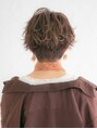 ウェットスタイルでオレンジ系カラーが映える、ショートのニュアンスパーマスタイル。大きなS字カールと外ハネで今っぽく。【EARTH辻堂店】