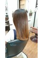 細毛でトップにボリュームが出にくく、ダメージを受けやすい髪質。他サロンでいつも明るめのカラーをされていて、薬剤除去は無し。中間から毛先にかけて、ゴワゴワ、ギシギシ、バサバサ・・・髪の状態が気になりご来店頂きました。
