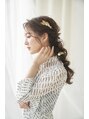 - ヘアセット ドライフラワー アップスタイル シニヨン ハーフアップ 結婚式 二次会 ヘアアレンジ