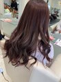 毛先に少し残っているブリーチをいかして全体にピンクをのせました。