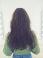 ロングヘアのゆるふわウェーブ スタイル!ロングの王道でストレートよりもウェーブがあることでやわらかさが出て女性らしさが引き立ちます!センターバングなのでさらに大人クール感もでて印象を変えたい方にはおすすめなロングスタイルです!