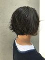 男性にもオススメなショートボブスタイル。広がりやすい癖のある髪をパーマ風に。内側の毛量調節をしっかりする事で扱いやすくなっています。