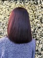 さらさらストレートなミディアムボブ。レイヤーはほとんど入れずにまとまりやすさを重視。ストレートはボリュームやうねりを抑える程度にまっすぐになりすぎないように仕上げました。乾かすだけでまとまります。