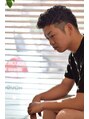 シンプルにサイドとバックは刈り上げ、パンチパーマ風パーマをON昭和感漂うヘアデザインです。