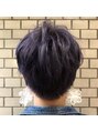 スッキリさっぱりショートスタイル。前髪は眉上にすることでボーイッシュになりすぎず可愛さも残します。カラーは時間が経っても黄色身が出にくいように”ラベンダーアッシュ(青紫)”色が抜けてもグレーっぽくなるので色の変化も楽しめます♪