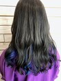 もともとブリーチをしてる状態で、インナーの部分をもう一度ブリーチ。その上からブルーを入れました!