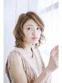 ミディアムカールヘアー。ウェット感のある毛束が、髪の動きを感じさせるウェットカールスタイル。