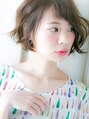 ナチュラルな明るめアッシュブラウンで、柔らかさを強調。ひし形のショートを無造作なカールで大人な雰囲気を。バーム系のスタイリング剤で柔らかく、くしゃっと揉み込むようにセット。柔らかいナチュラルカラーが際立ちます。