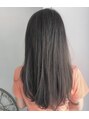 黄ばみ、赤味を抑えながら透明感と柔らかさを狙ったカラー。グレーにし過ぎないのがポイントです。全体にハイライトが入っています。根元は暗めにリタッチする事で、伸びてきても目立たず、赤味もしっかり抑え、自然な陰影がつきます。