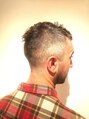 際どい刈り上げのソフトモヒカンスタイル。スタイリング剤はベースはN.グリースアクアにすこしN.ジェルバームを足して艶感のある分け目なしのスタイルで。
