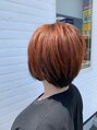 アプリコットオレンジ ブリーチカラー 切りっぱなしボブ