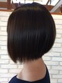 頭の形がキレイに見えるように、後頭部の丸みをつけて柔らかい雰囲気に。カラーは、トーンダウンの髪をイルミナカラーでほんのり明るく。落ち着いているけど、透明感のあるカラーに仕上げました。