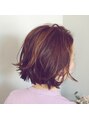 ハイライトを入れて軽く動きのあるスタイルにしました。ベースのカラーはそこまで明るくせず、根元も暗めに仕上げているので髪が伸びてきても気にならないデザインにしています。伸ばしてかけの方にもおすすめのヘアスタイルです。