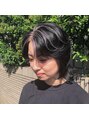 デザインハイライトスタイル。バングのみのハイライトにベースはコントラストを出すためにブルーブラックをオン!カットはウルフスタイルでよりハンサムに。