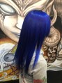 蛍光感のある鮮やかなブルーです!元々明るい髪だったのでブリーチ1回で!本来はブリーチ2~3回してからがおすすめです☆