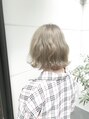 ケアブリーチでしっかりケアしてオンカラーはできるだけ黄ばみを取るシルバーベージュ☆外ハネボブは軽やかさと透明感を引き立てます☆