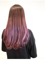 ご希望はパープルグラデーションカラー。中間、毛先の順にブリーチを2回させて頂き毛祭に関してはペールイエローまで脱色。そこへ中間はガーネットパープルをいれ毛先はパープルのカラーバターをとっても綺麗になりました。インパクト大です。