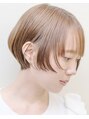 より小顔に見えるように顔周りを短く設定して、、お顔にフィットさせています。♪後頭部の奥行きがあごラインからの延長線上になるようにしているので横から見てもお顔が小さく見えて首もキレイに見えます!☆ベージュで軽さも感じるミニボブがおススメです!