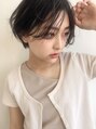 大人可愛い丸みショートヘア。後頭部の丸みが綺麗に見え、襟足はす短く、耳にかけてもかわいい。流せる長めの前髪を作ります。ワックスで全体的につけて簡単にスタイリング◎n.カラーでシアバター入りにのツヤカラーで8トーンのアッシュグレージュ。