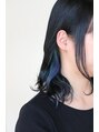 ベースはをブルー系でトーンダウンインナー部分はブリーチ後、ブルーとアクセントでグリーン
