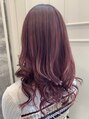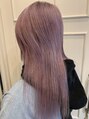 ブリーチで16レベルに明るくします。トップは8レベル、アンダーは13レベルのラベンダーカラーをのせてあります。ゆる巻きをして仕上げるととても可愛いですよ♪
