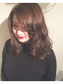 アッシュブラウンのミディアムスタイルラフにゆるく巻いて大人っぽく艶々に