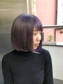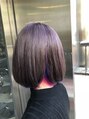 インナーに2色・ピンクと紫を入れているスタイルです。表面はパープルグレージュです。アゴ下の切りっパボブカットです。