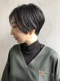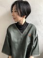短い長さの前下がりボブです。耳たぶがチラッと見える長さ設定でスッキリ抜け感を出します。毛先が重すぎないのもポイント。