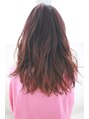 濃い目のピンクレッドでガーリーに仕上げました。緩く巻くだけでも可愛くなるようにカットもしています。