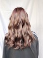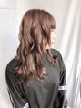 光沢のあるアッシュブラウンカラーです。ブリーチ毛からのカラーだと、透明感が出やすくて綺麗です。