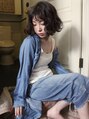 暗めのカラーに根元からウェーブを♪パツッとカットしてモードさを♪