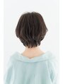 ェイスラインに沿うように前下がりボブラインのショート。重い色合いに軽いシルエットで程よく落ち着いた雰囲気に。カラー、艶感に光に当たると透けるモノトーンでカッコよく。