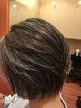 ハイライトローライトカラーを多めに入れて上からグレージュカラーをかぶせています。1回ではなく何回も入れることでより自然な仕上がりになります。