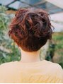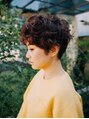 襟足をぎりぎりの長さに攻めた、マッシュベースの収まりの良いボーイッシュショートスタイルです。 女性らしさが感じられるように丸さをつくりました。トップは長めで動きを出せる長さにするのが、スタイリングもしやすくおすすめです。