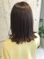 伸ばし中の方にオススメスタイルです。肩につく一番ハネる長さはあえてハネさすスタイリングで。カラーはツヤ感溢れる暗めのブラウンカラーです。