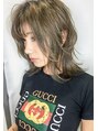 ミディアムウルフレイヤー アッシュ ハイライト グレージュ
