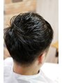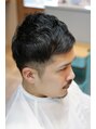 スキンフェードとアシンメトリーバングを組み合わせたスッキリしたショートスタイルです。普段着でもスーツでも似合わせしやすい万能スタイルです。