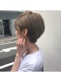 外国人風ハイライトのショートボブ☆ハイライト部分をブリーチをして黄味が出ないようにしてから、アミノ生ケラチントリートメントでダメージの補修と色持ちを良くしてからハイライト+グレージュでカラー☆メルトカラーや白髪ぼかしにも使える万能カラー
