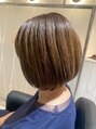 オレンジベージュのカラーを生きるように、フェイスラインに透明感を出したパーマがポイント。ロングでも重く見えずすっきりした印象に仕上がります。幅広い年代に人気のスタイルです。【EARTH●●店】