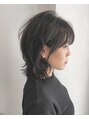 しっかりレイヤーを入れたウルフカットベースにダークチャコールグレーでカラーリングしています。スカスカにすると昔っぽい感じになってしまうので、適度な重さを残すのがミソです。