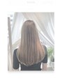 重めに仕上げたロングヘアー。すこーしだけ毛先は身体のラインに合わせたグラデーションが入っています。カラーを明るめにしてバランスとっています。