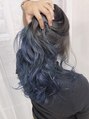 一度毛先にブリーチをしてアディクシーカラーで根本中間はダークシルバーに染めて毛先はビビットな青になる様にBLUEで染めました!!グラデーションで毛先だけブリーチしているので今までブリーチされた事がない方もチャレンジしやすいです。