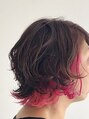 人気の外ハネ切りっぱなしボブにベースに、外ハネパーマをプラス。色は、全体にピンクベージュ系のチェリーピンク。インナーには大人気スウィートピンクをブリーチ後に乗せてあります。色落ちも楽しみなステキなスタイルです。