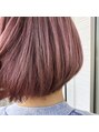 切りっぱなしボブ/ピンクカラー/ブリーチあり