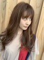 ロングレイヤースタイルです(^^)ハイライトを全体に入れ、流した後にラベンダーベージュでカラーしました。前髪は、毛先にボリュームを出したいのでシースルーバングにしてあります。