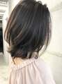 32mmのアイロンで下は外ハネに巻いた後にオーガニックオイルを揉みこむだけ【気に入ったスタイルは「ブックマークする」ボタンを押してご来店時ご提示ください】シースルーバング,アシンメトリー,伸ばしかけ,大人ボブ,センターパート,ハイライト