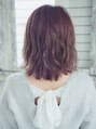 鎖骨くらいの長さに切り、段をいれず切りっぱなしにしました。カラーは明るめの透明感あるピンクベージュに染めてました!バングを流すことにより、大人可愛いスタイルにしました。外ハネも似合うし、伸ばしかけの方のもオススメです。