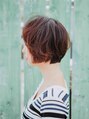 前下がりのショートボブスタイル。襟足がスッキリとしたヘアスタイルで年代問わず挑戦できるヘアスタイルです!少し流せる前髪、耳にかけれる長さで女性らしさが残る髪型です。ヘアカラーは毛先が明るくなるナチュラルなグラデーションカラーになっています。