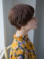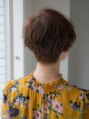 ネープをギリギリの長さにして45度の角度でつなげたマッシュスタイルです。バックには頭の丸みが出るようにレイヤーを入れました。 バングは眉上でトップから大きめのカールをつけて柔らかい動きが出るようにしました。【稲毛】