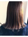カットラインをぱっつんで残したワンレングスです。毛量調整してからカットする事で、パッツンでも重くならず、タイトにおさえても、巻いて動きを出しても、いい感じになります。カラーは大人っブラウン&コクラベンダー。